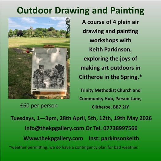 A course of 4 plein air drawing workshops with Keith Parkinson. Explore the joys of making art outdoors in Clitheroe in the Spring.
